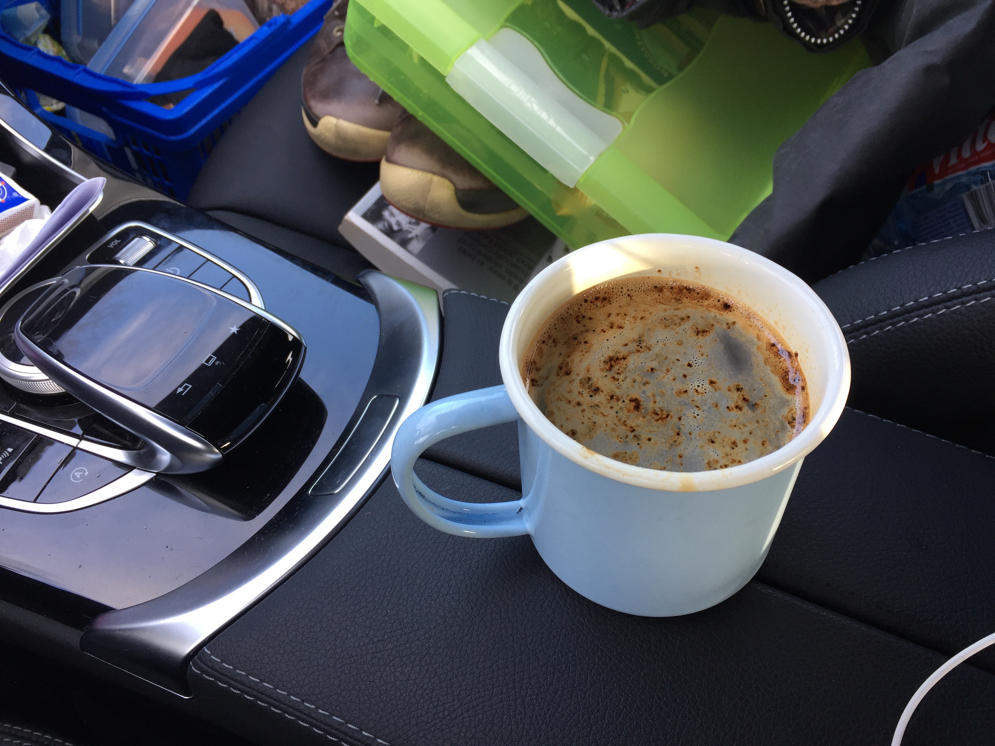 Die Nacht habe ich dann tatsächlich in meinem Auto verbracht. Dank eines ordentlichen Schlafsacks, einer soliden Unterlage aus Isomatte und Luftmatratze sowie des Umstandes nahezu perfekter Ruhe auf dem Campingplatz hat es auch zu stundenweisem tiefen Schlaf gereicht. Aber ich muss zugeben, dass das nicht mein Art der Nachruhe wird. Fünf Sterne müssen es für mich nicht sein, aber die beachtliche Kulturleistung Bett bejahe ich überzeugt. Nichtsdestotrotz war ich des Morgens vergnügt über die nächtliche Erfahrung, die ich meinem Schatz hinzufügen konnte. Der blaue Himmel half ebenfalls dabei, die Laune in die Nähe von Euphorie zu schrauben und so machte ich mich guten Mutes an die Vorbereitung meiner Runde auf dem berühmten West Links.