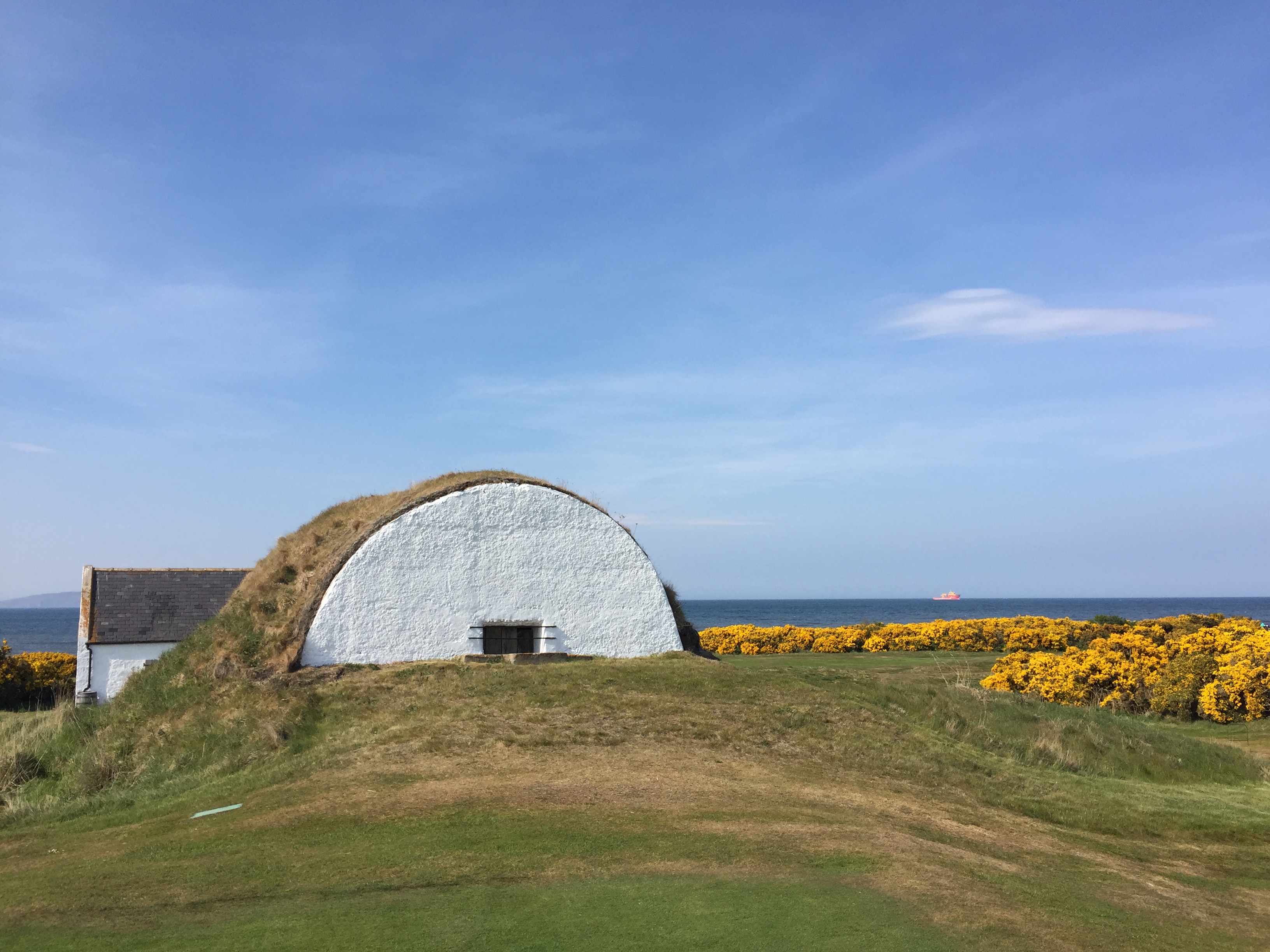 Zugegeben, es mag sehr einfach sein, sich in einen Golfplatz zu verlieben, wenn man ihn an einem warmen, sonnigen Tag bei gelb-blühendem Ginster spielt. Außerdem hatte ich aufgrund der vorhergehenden Tage die ich ausschließlich den Links von Brora, Dornoch, Wick und Golspie gewidmet hatte, ohnehin schon gut Laune. Doch andererseits fand ich den Platz nach meinem ersten Spaziergang gar nicht so attraktiv. Er schien relativ voll zu sein, das Clubhaus war mir ein wenig zu amerikanisch und insgesamt war ich nicht bereit, einen neuen Lieblingsplatz zu finden.